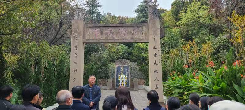 学院在陶行知墓前,举行了纪念活动。学院党委书记带领全体教师向陶墓行鞠躬礼,并向陶行知墓敬献花篮。学院院长叶忠在祭奠讲话中跟大家分享了陶行知的故事,他希望老师们能够以人民教育家陶行知先生为榜样,秉持“千教万教教人求真,千学万学做真人”的理想信念,按照习近平总书记提出的“四有好教师”的要求,坚定理想信念,厚植爱国主义情怀,加强师德修养,为教育事业贡献自己的力量。随后,全体人员绕陶行知先生墓一周,表达对陶行知先生的敬仰和哀思之情。
