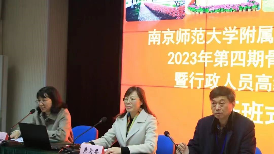 党委书记黄菊香致欢迎辞。骨干班教师代表陈丹发言。南师附中江宁分校党委书记、校长张士民做开班式讲话。