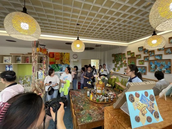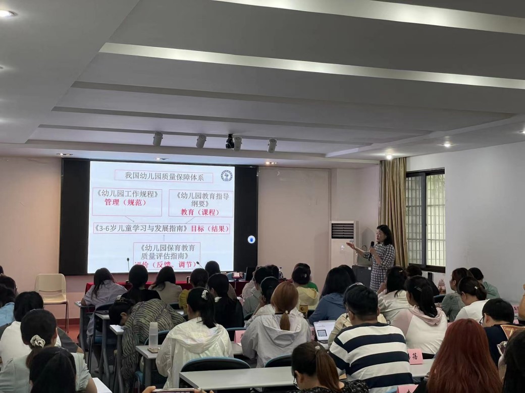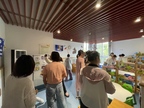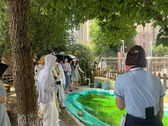 7月26日下午,“双基”培训班的幼儿园青年教师们前往南京市栖霞第一实验幼儿园尧辰分园。学员们分为三组,在该校老师们的带领下进行室外和室内校园设施布局参观。该园业务主任张倩作《畅美特色活动 助推园所发展》交流报告。张主任从等个方面进行园所介绍,重点交流了尧辰分园在集团畅美课程引领下的具体做法,通过多个特色视频,向学员们介绍了园部木工创意活动、足球特色活动的开展经验。