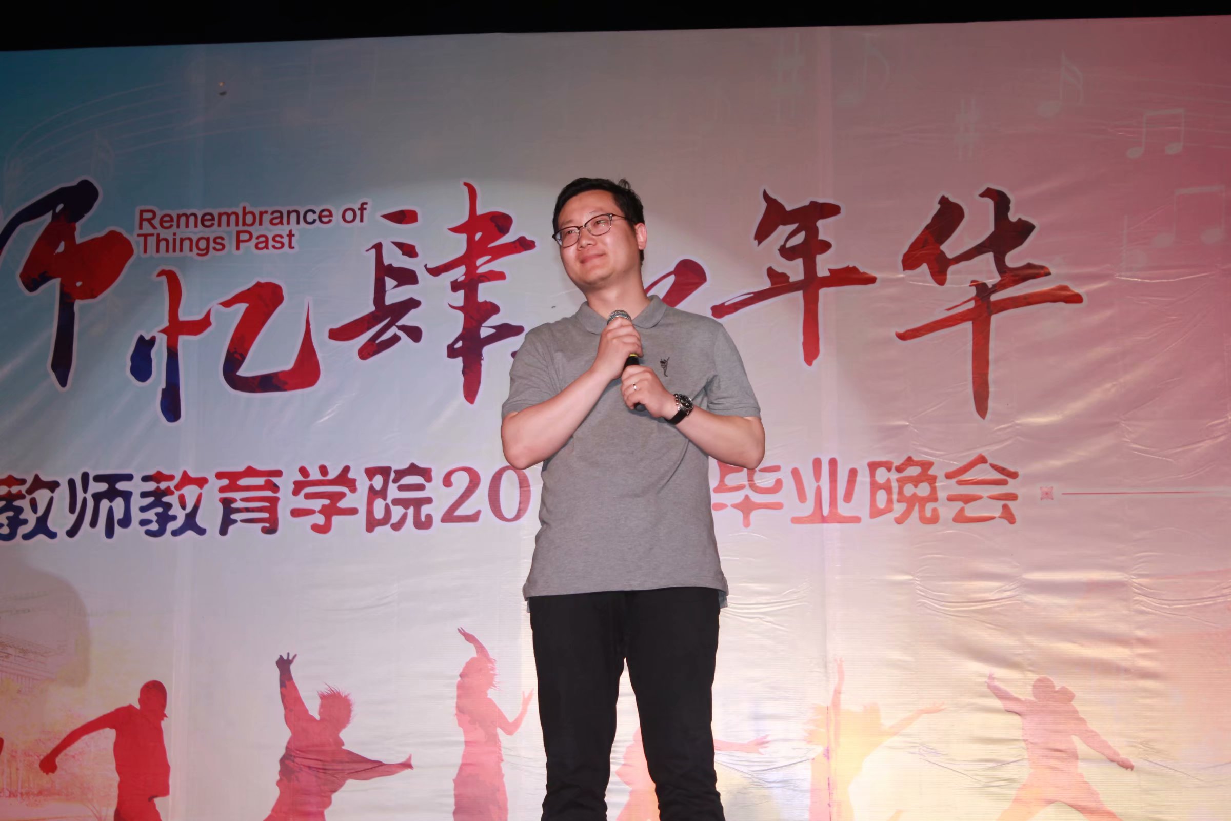 STS舞团的创意劲舞拉开了晚会的帷幕,《好汉歌》和《失恋阵线联盟》的反转让人忍俊不禁,舞蹈的热情感染了在场的每一位观众,引来阵阵欢呼。晚会伊始,张杰老师向毕业生致辞,表达了对2018届毕业生的真诚祝福和殷切期盼。 张老师希望毕业生不忘母校栽培之恩,不忘“学为教育家”的初心,在人生新征程里无悔前行。