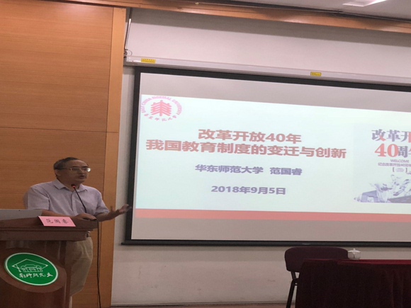 研究生新生入学教育讲座在仙林校区敬文图书馆西报告厅顺利开展。教师院特邀国家级重大人才项目获得者范国睿教授担任主讲,为新生多角度全方面讲解改革开放40年我国教育制度的变迁与创新。讲座由博彩网址大全