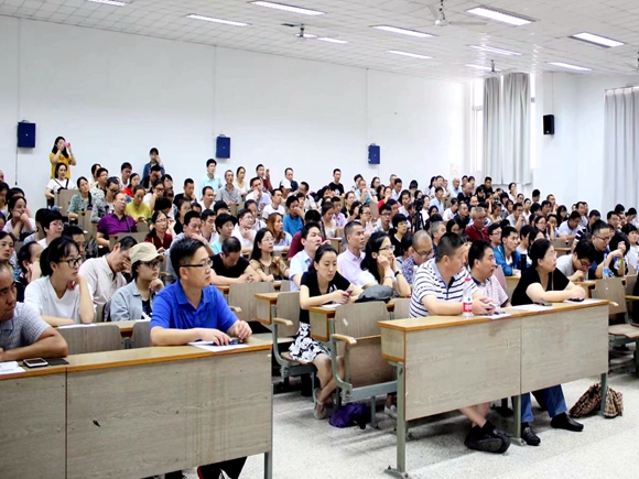 的前世今生。杨院长重点介绍了教师院“共同培养,双向强化”的特色办学模式,以专业课和教师教育课程同步讲授的方式双向强化师范生的专业知识和教师技能,培养卓越的精英教育人才。杨院长介绍,教师院承担了2014年教育部“卓越教师计划”下属的“卓越中学教师计划”,实行本硕贯通的“3+3”模式,培养优秀的基础教育教师和卓越师资。就师范毕业生竞争激烈的行业现状以及深造学习的解决办法,他鼓励17级新生能够以未来教育家为目标不断精进和努力,也呼吁家长们积极配合学校工作,共同为学生们的成长提供更好的环境。