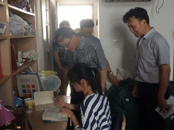 院长向同学们了解了对新宿舍的感受和目前状态,每到一间宿舍,学院领导都受到了学生和家长们的热烈欢迎。在交流中,学院领导首先对同学们选择师范这一教书育人的专业表示赞赏,又与学生聊起家乡、来校方式、生活条件和适应情况,希望来自四面八方的学生可以在宿舍这一大家庭中取长补短、互相学习。院领导特别仔细询问生活是否方便、饮食是否习惯等问题。杨院长在访问时关心了每个宿舍的到校情况,了解了各位同学的衣食住行,叮嘱了父母们参加家长会,在看访中更是汗湿了衬衫,还特别嘱咐同学:“要好好休息。”同学们也表达了对未来大学生活的向往,整个新生宿舍充满着欢乐的笑声。