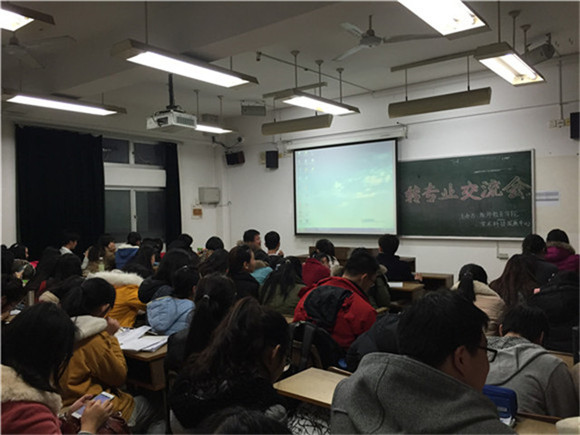 此次交流会现场座无虚席,还有一些没有位置的同学站着听讲,可见大家对于转专业的重视和高昂的学习热情。交流会设计了提问环节,来分享经验的学长或学姐分享完自己的经验后都会有同学提问,分享者总能给出提问者满意的答复。