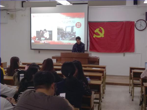 本次党课议程由物理化学联合党支部书记吴捷同志主持。首先,在场全体成员起立,奏唱国际歌。接着来是本次党课的第二部分内容:先锋党校“五个一”活动的线下分享。来自不同院系的六位同学: 闵根华、朱宇桐、向紫玲、郭梓岩、马媛媛、陈琦依次上台分享了自己寒假“五个一“活动的经历,在家乡的遗存等活动中大家亲身体会到祖国改革开放四十周年的巨大变化、时代的变迁和取得的伟大成就;在参观雨花台烈士纪念馆、致敬周恩来总理等活动中,成员们深深地被为祖国的建设而奉献一生的英雄们所折服,体会到了祖国现在的繁荣昌盛来之不易,抒发了对祖国美好未来的祝福之情。同时,台下的支部成员投票选出了最喜爱的两位分享者,并为八位同学都送去了热烈的掌声。最后,全体成员观看了纪录片《航拍中国》第二季的第七集——江苏,感受祖国秀色可餐的风光。