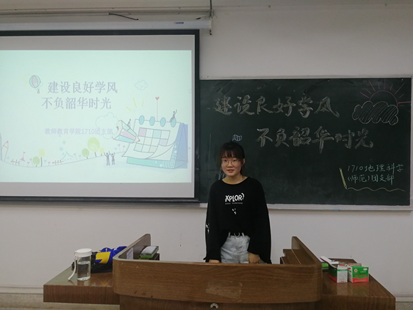 17级地理师范班在学明楼212教室成功举办“建设良好学风,不负韶华时光“主题班团活动,此次班团活动由团支书李启航策划并主持,17地师班全体同学参加。