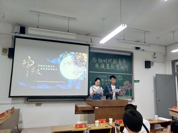 2018年9月20日晚上,2017级历史师范班同学与2017级物理师范班同学于仙林校区学正楼307开展以“历物时代新青年·夜谈星辰赏明月”为主题的班团活动暨中秋团圆会。本次活动由17级物理师范与17级历史师范联合举办,历师班团支书胡敏同学与物师班团支书邱海锋同学共同主持,辩论队、礼仪社同学友情参与,分团委宋洪静同学全程参加。