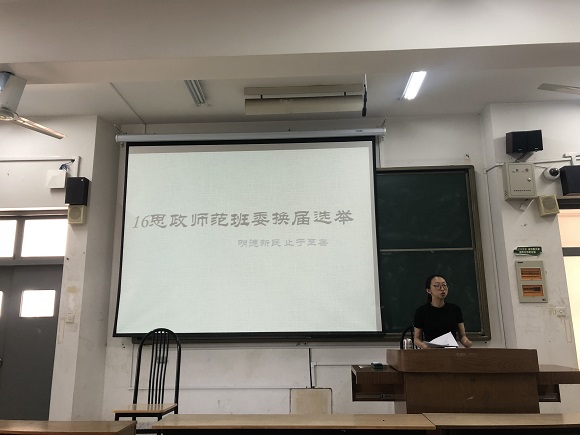 16级思想政治教育师范班在仙林校区学海楼210开展了班委换届选举会议,在班长周箐雯的主持下,全班同学都出席并且投出了宝贵的一票,为选择出更加合适的班委尽一份力。