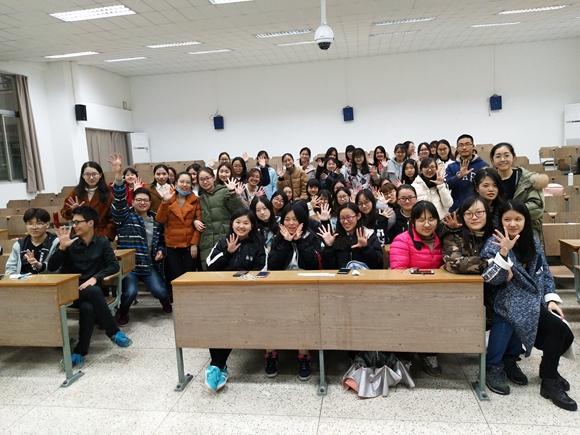 活动开始前,同学们通过抽签决定今天所在的组别,之后的所有活动都以小组为单位。活动伊始,全场气氛就活跃起来,因为在第一个环节“猜猜我是谁”,10位同学小时候的照片被投上大屏幕。面对熟悉而又陌生的面孔,同学们四处环顾,想找到她们的主人。其中薛晓蕾同学的观察力最为敏锐,接连答出3张照片,为自己所在的队伍连加6分,预定了最后的冠军席位。第二个小游戏名为“蒙眼寻物”,顾名思义,它要求一位同学蒙眼接受指挥,这不仅考察了同学间的默契,更考验她们对彼此的信任。经历了一系列晕头转向和手忙脚乱之后,各组纷纷完成任务,张钰和华心怡同学以35秒的好成绩排名第一,巩固了她们组的冠军地位。最后一个游戏“合作放瓶”要求通过合作达到目标,最后也完美达成了。如果说游戏环节活跃气氛,那么“回忆大学这半年”和“赞赏”就更有思考的空间,大学生活不知不觉已经过去了半年,之中的酸甜苦辣在今天回忆起来都格外有趣,原来大家一起经历了这么多事情。发现每个人身上的优点,用赞赏的眼光看待合作者,这是同学们在集体生活中学到的。最后,在《最初的梦想》这首歌中,所有同学拍了一张集体照,将快乐的瞬间定格。