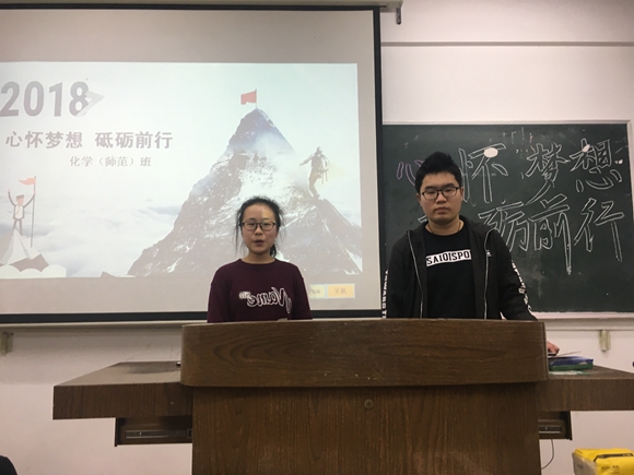 16级化学(师范)班在学明楼203教室举办了“心怀梦想 砥砺前行”主题心理团辅活动。本次活动由心理气象员冯睿和杨华飞同学主持。