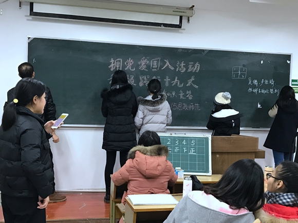 15级思想政治教育师范班全体同学于12月14日在学明楼312顺利开展了党的十九大知识竞答活动。