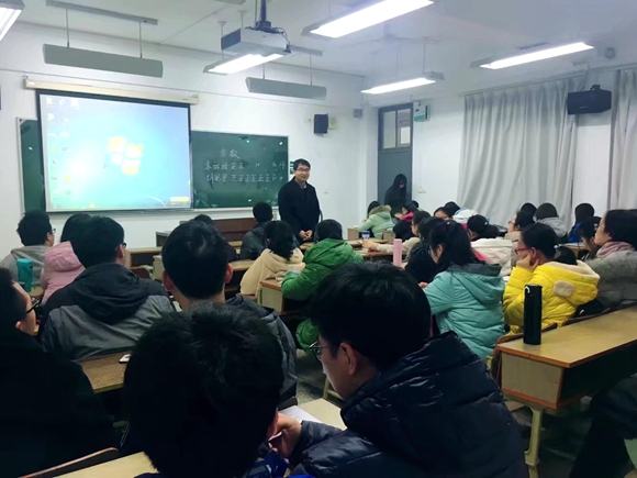 1月2日下午,16级化学师范班在学明409召开了期末述职大会暨换届班会,会议的主要内容是通知期末考试日程安排,各班委总结学年工作,班委满意度调查及团支书的换届选举。班会由班长孙境泽主持,辅导员过超指导,全体同学积极参与.
