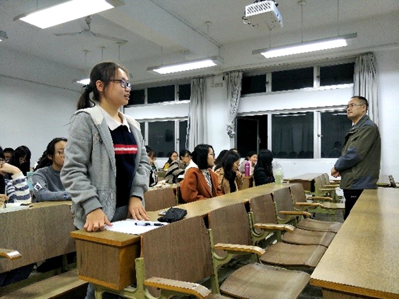 紧接着,王晨露同学就保研与考研的问题与老师进行了探讨,使同学们受益匪浅;吴越佳、金诗琪等同学就教师职业的挑战性与安逸性以及如何平衡每门学科的学习提出来自己的看法,他们的发言也使同学们对自己未来的职业发展进行了思考,许老师也对我们未来的就业方向给出了自己的建议。在讨论中,谢天言同学提到,不希望大学只是高中的延伸,希望在大学的学习生活中能够培养自己的开放性思维与批判精神,更好的内化知识,而不是盲目死板的学习。许老师对谢天言同学的看法表示了赞同,并对我们提出了自己的建议,许老师希望我们在面对同一件事情时能够从多个角度深入思考,有自己的想法与见解,而不是随波逐流,人云亦云。作为一名大学生,要有自己的生活方式与学习方法。