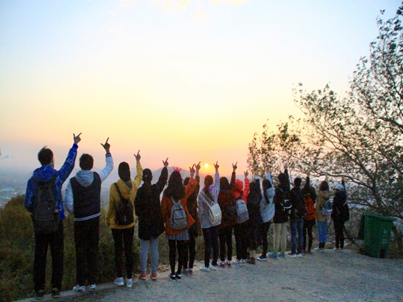清晨四点,同学们在学校正门整队集合。集合完毕后,经过一小时的摸黑骑行,大家来到了栖霞山的脚下。虽然当时天气寒冷,视线不良,但是同学们没有退缩,毅然地爬到了山顶。望着眼前宽阔,望不到尽头的河水,以及繁星点点的天空,同学们开始期待日出的到来。渐渐东方开始现出鱼肚白,同学们期盼已久的太阳终于开始升起来了。同学们纷纷拿出手机拍照留念,此前付出的汗水与努力都在这一刻得到了回报。七点左右,第一组的同学开始下山,与随后赶来的第二组同学在栖霞山门口会合。之后,第一组同学自愿选择回校休息,或者与第二组同学一同游览的栖霞寺。在游览遍栖霞寺后,同学们开始了爬山活动。栖霞山的枫叶已经逐渐泛红,大自然美丽的景色仍然让同学们暂时忘却了繁重学业的压力,得到了精神的放松。中午时,同学们第一次尝试了在寺中吃斋饭。斋饭十分朴素简单,只有素面、素鸡和素鸭。这让同学们真切地体会到了佛教中的慈悲为怀、勤俭节约思想,更加珍惜了平日的生活。
