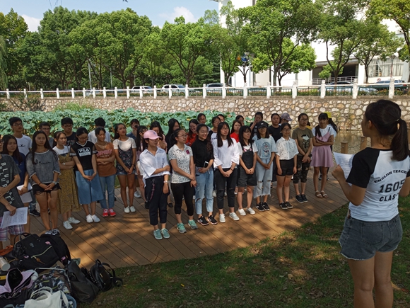 1605英语(师范)支部在南京师范大学仙林校区月亮湾成功举办了“青春喜迎十九大,不忘初心跟党走”主题班团活动的室外场。1605团支部有幸邀请到校团委孔晖老师一同参与本次的班团活动。