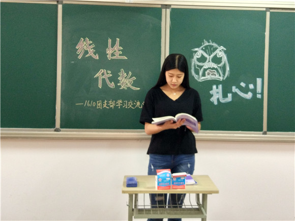活动开始前,丁荣同学认真备课,细心准备,一丝不苟,希望线性代数小课堂顺利开展。