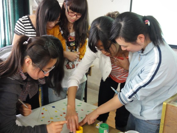 在胡梦蝶同学吉他弹奏的一首清新明快的《雨滴》中,班会拉开了序幕。接着李慧玲和郭诗豪两位主持人开始了同学们童年时照片的展示。为了使照片展示的环节更有乐趣,采用了随机抽取学号猜照片的方式,猜中的同学可以顺利领到奖品,而未猜中的同学则必须完成一项惩罚小任务才可以领取奖品。惩罚的措施五花八门,十分挑战大家的娱乐精神,如模仿一段经典广告,表演超人,用咆哮体朗诵《沁园春?雪》等等。虽然一些同学的照片特征明显,一下便能猜出,但也难逃心理气象员的整蛊:俞佩雯同学用红色头绳扎成两尾麻花辫的图片在《辣妹子》的背景音乐下逗得大家乐开了怀;李艳艳同学穿着一身红格背带裤,带着俏皮鸭舌帽的照片被修成可口可乐的儿童模特让大家耳目一新;徐杰妮同学短发时俨然一位小帅哥的图片在经典的《上海滩》背景音乐的衬托下别有一番风味;金凯秋、周静、李旻璐、孙竟研等同学也狠狠地被“娱乐”了一把……同学们在欢声笑语中一起分享了各自童年时的美好时光。