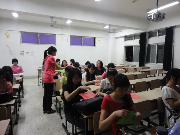 最后,组长分发卡纸,布置这周的折纸任务。组员们开心地挑选了自己喜欢的颜色,挑选完毕后,姑娘们都跃跃欲试,只见一双双巧手在不停地摆弄着那些五颜六色的纸片,一个个鲜活的成品呼之欲出。