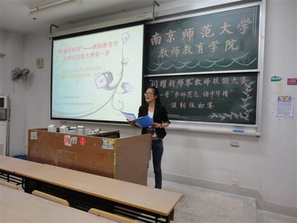 第一季“书师范志,诵中华情”演朗组初赛在仙林校区学海楼427正式拉开序幕。教师院党委副书记朱冬梅老师,教师院教师职业技能素养课程讲师李园老师,辅导员李晓亮老师以及08级高振涵学长应邀出席本次大赛。团委学生会轮值主席田哲同学担任本次大赛主持。