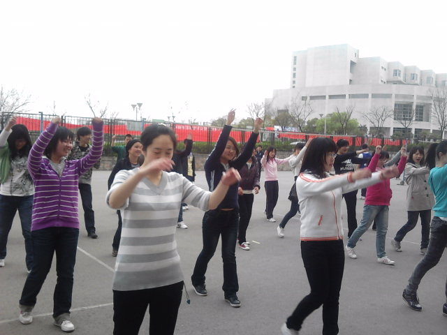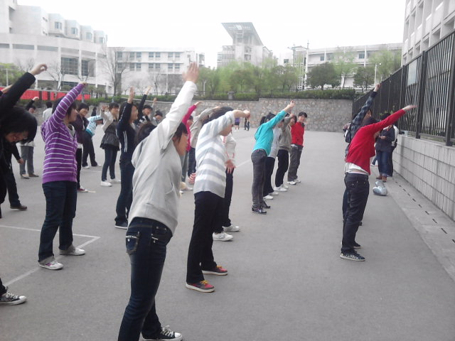 继上学期“体动师院,且知且行”健身主题活动后,继续开展了“2011年‘且知且行’春季广播操月活动”。本次活动中,思政班被安排在4月13日及26日在仙林校区东区排球场做第八套广播体操。