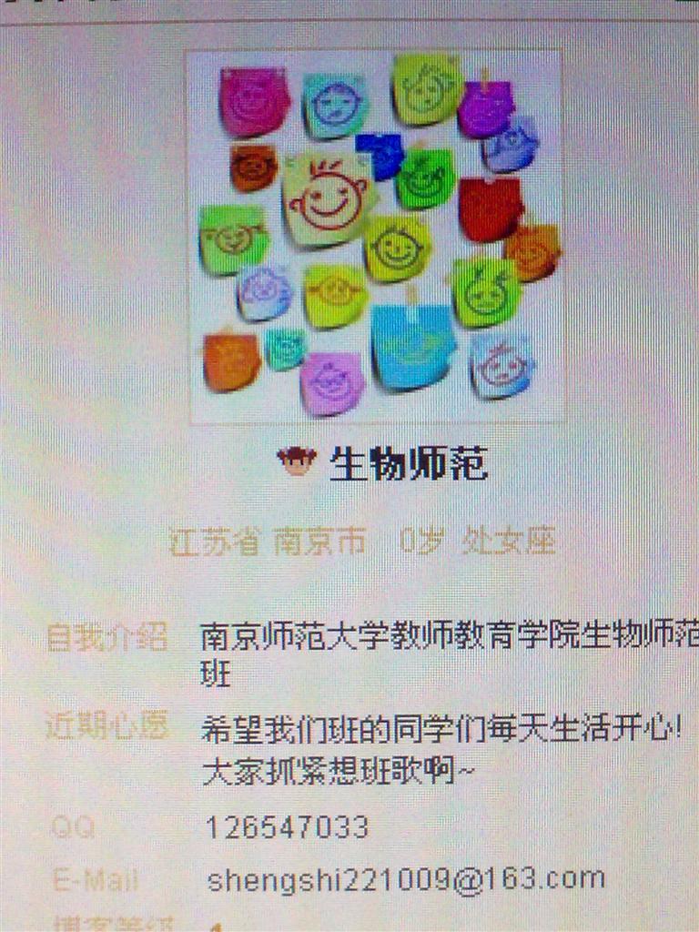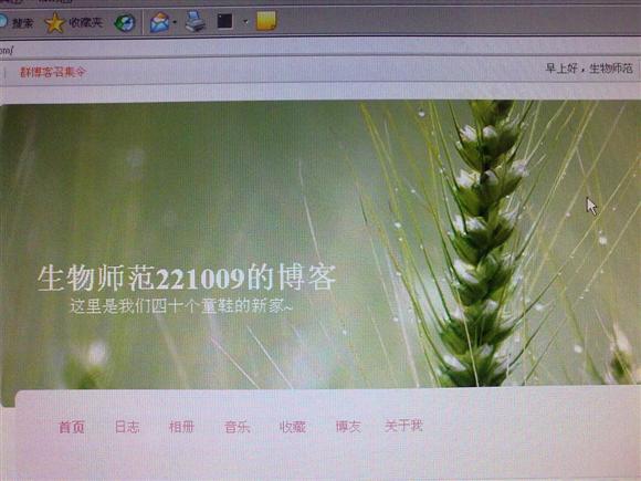10级生物师范班团支书虞梦琦向同学们宣布了一个振奋人心的好消息,生物班终于有了一个由四十个人组成的新家——班级博客。这是自班级QQ群建立之后的又一项班级网络建设的新举措。