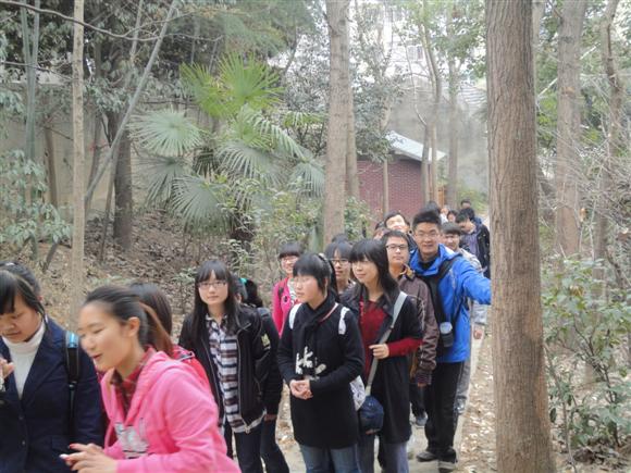 物理师范全体同学于早上七点四十准时出发,经过半小时的路程后,大家来到美丽的紫金山脚下,路上游人如织,同学们自觉排成队伍,有秩序地向山顶行进。一路上同学们兴致高昂,脚步轻松,遇到崎岖的山路彼此帮忙,不让任何一个同学掉队。一路上大家互帮互助、共渡难关,充分体现了长征路途中“不畏艰难,共同前进”的革命精神。