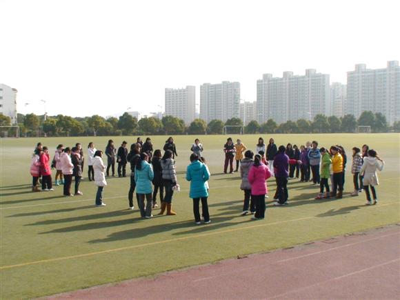 英语师范班于东区足球场进行了“贴烧饼”游戏。