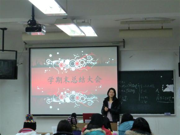 本次班会主要分为两个部分,六大流程。随着幻灯片上“回望2010”的主题字样,班长吴怡雯同学带大家回顾了这一学期思政班举办和参加的一系列丰富多彩的活动以及所获得荣誉。一张张图片,一段段视频,一句句生动诙谐的讲解,让大家在捧腹之余发出了“这学期过得真充实”的由衷感慨。当然,这些精彩瞬间的缔造都离不开每位同学的努力。“回顾与期许”的个人PPT风采展也随之进行。同学们用风格各异的PPT展示了对过去本学期大学生活的总结和对新一年的期望。或搞笑诡异或端庄可爱的照片,或轻松幽默或深沉凝重的文字,传达的都是思政班同学们的思考与心声。接下来的班委述职环节,思政班十位班委依次上台进行工作总结,在他们朴实诚恳的言语中,同学们更加了解了班委的工作和辛勤的付出,也针对他们工作的不足提出了很多建设性意见。