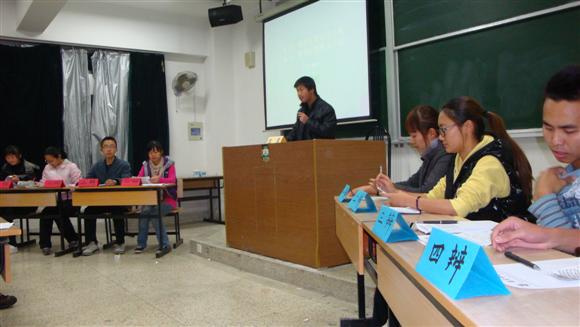 地理与物理师范班辩论队在学海楼319教室参加了入学后的第一场辩论赛。辅导员李晓亮老师作为评委出席本次比赛。