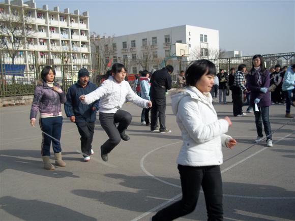 “托球绕杆”作为开场赛,吸引了很多人的目光。所谓“托球绕杆”即是用乒乓球拍托住小乒乓球,以S型路线穿梭于数十根杆子之间,完成八十米长的路程,并轮流来回四次。由于寒风凛冽,使比赛难度明显增加,但思政班和汉语言文学班的同学积极合作,迎难而上,最终完成了比赛。虽然所获成绩不佳,但其通力合作的精神却是满分。