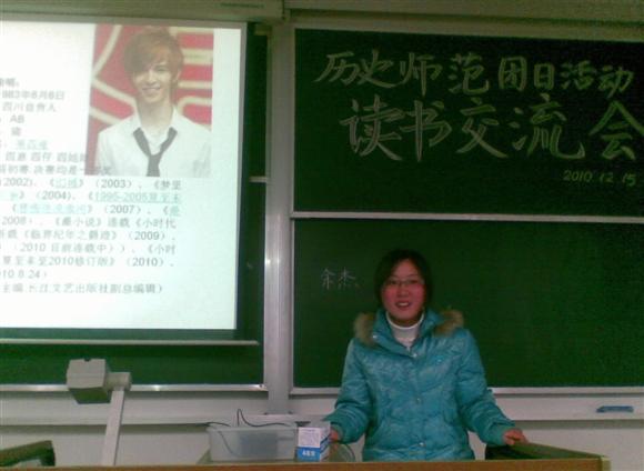 历史师范班在仙林校区学海楼.319教室举行开学以来的首次团日活动——读书交流会。此次读书交流会以宿舍为单位,每宿舍推荐一本好书,用幻灯片、演说稿等形式介绍、推荐给大家。班级的全体同学均参与了这次活动,历时一个半小时的团日活动令同学们收获颇丰。