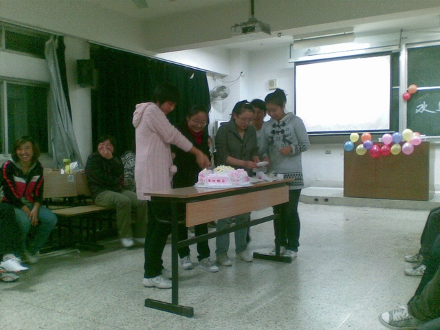 也许班会中的节目过于简单,没有华丽的灯光、绝妙的音响、绚丽的服装,但是这些倾注努力的节目依然成功地将同学们的心拉近、拉近。那段令人难忘的方言秀,在各种方言展现中,是心与心的交流,更是不同民族、不同地域、不同国家文化间的交流,地域间民族间的隔阂在那一刻化为泡影,有的只是同学间深厚的友谊及对对方文化的赞扬与认可。一系列的互动游戏使大家懂得团结、合作。“极地求生”中,同学们互相扶持,团结一致,斗智斗勇,上下同心协力打败“对手”。当一曲生日快乐歌响起于耳际,每个人的心中不由升起一丝感动与温馨。是的,即使远离家乡,即使远离亲人,即使第一次在异地哼着生日歌,即使对刚刚融入的新环境还不熟悉,我们仍然有理由相信,这会是一场最甜蜜的生日会,这是为十一月生日发同学庆生,更是为班级中每位同学的相聚而欢庆。