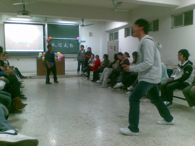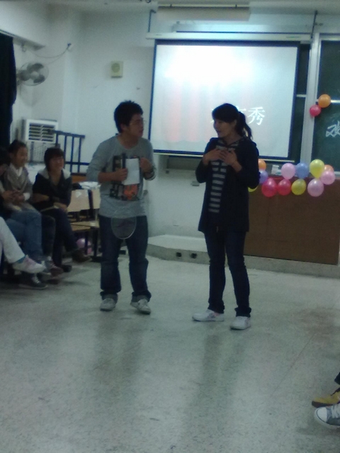 班会在主持人的一段轻松调侃中开幕,紧接的节目应接不暇。徐新宇和陈佩韦的一曲《春天的呐喊》点燃同学们的热情,他们利用羽毛球拍空弹吉他的表演让全场掌声笑声不断,爵士舞、脱口秀、独唱、互动游戏、方言秀,一次次将现场气氛推向高潮。而最后的“surprise”——为十一月份生日的同学庆生更是将大家的激情完全点燃。