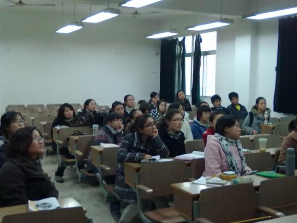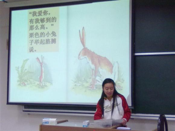 汉语言文学班决定每周举行一次演讲活动作为班级特色活动之一。每次按学号轮流上台演讲五至十分钟。班长李思悦同学作为首位演讲者给大家带来了精彩演讲。流畅的英文配合PPT漫画为大家讲述了一个“How much do you love me”的故事,启发大家要关爱身边的每一个人。故事虽然简短,但她流利的英语口语,生动的漫画展示,耐人寻味的故事寓意赢得了全体同学的热烈掌声。