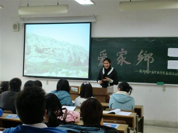 在吴怡雯同学简短精悍的开场白之后,来自三个省、十三个市的同学根据事前的分组依次上台介绍各自的家乡。为了能将家乡特色更多更好地呈现,思政班的同学做了充分的准备,幻灯片和解说都十分精彩。从最东南的福建到最西北的新疆,同学们用饱含深情的语言展开了一幅幅风格迥异,精美绝伦的画卷。思政班的同学大都来自江苏省,他们各具特色的演说展现了同一片江淮大地上的不同风情。其它省市的同学也也毫不逊色,闽南美食、新疆奇景都令人惊叹不已。同学们精心的准备,精彩的表现,展现了对家乡的浓浓爱意、款款深情、绵绵思念,很好的诠释了“爱家乡”这一活动主题。