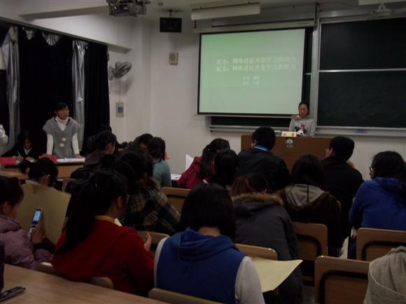 比赛尚未开始,现场早已座无虚席,双方辩手也蓄势待发。在主席吴艺斐同学简短的开场白后,辩论赛正式开始。首先由双方一辩进行立论,正方一辩张映月同学从提高学习效率、拓展信息采集宽度、方便互动交流、保证学习工作的私密性等角度论证了“网络进宿舍是学习的动力”这一观点。其清晰的思路、流畅的表达、沉稳的辩风赢得一片喝彩,为思政班赢得开门红。但反方一辩也不甘示弱,从网络的危害性、大学生的自制力不足等方面入手,让大家眼前一亮。