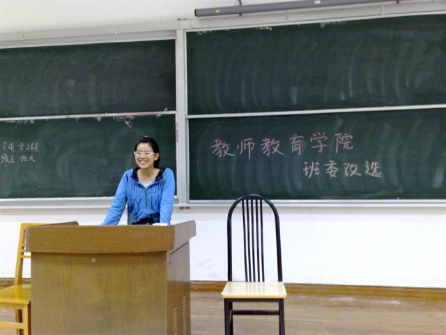九点四十五分,同学们准时来到学明楼二零二教室参加班委竞选。竞选开始前,支景老师再次对各职务的工作内容进行了说明。在支老师的倡议下,同学们首先依次上台作自我介绍。随后,近三十名同学先后在讲台上进行了竞选演讲,积极提出自己对于班级建设的构想,表达自己为同学们服务决心。每位参选同学都在事前做了认真准备,竞选方法也各有千秋:如竞选班长的张立同学,她在中学期间获得的国内外大小奖项与志愿活动经历都令在场的同学们佩服不已;竞选组织委员的欧金红同学,不仅将自己对这个职位的理解与同学们分享,还对自己如果当选即将展开的活动进行了详细描述,最后创造性地以一曲高歌结束了自己的演讲,台下的掌声此起彼伏,会场气氛热烈活泼。