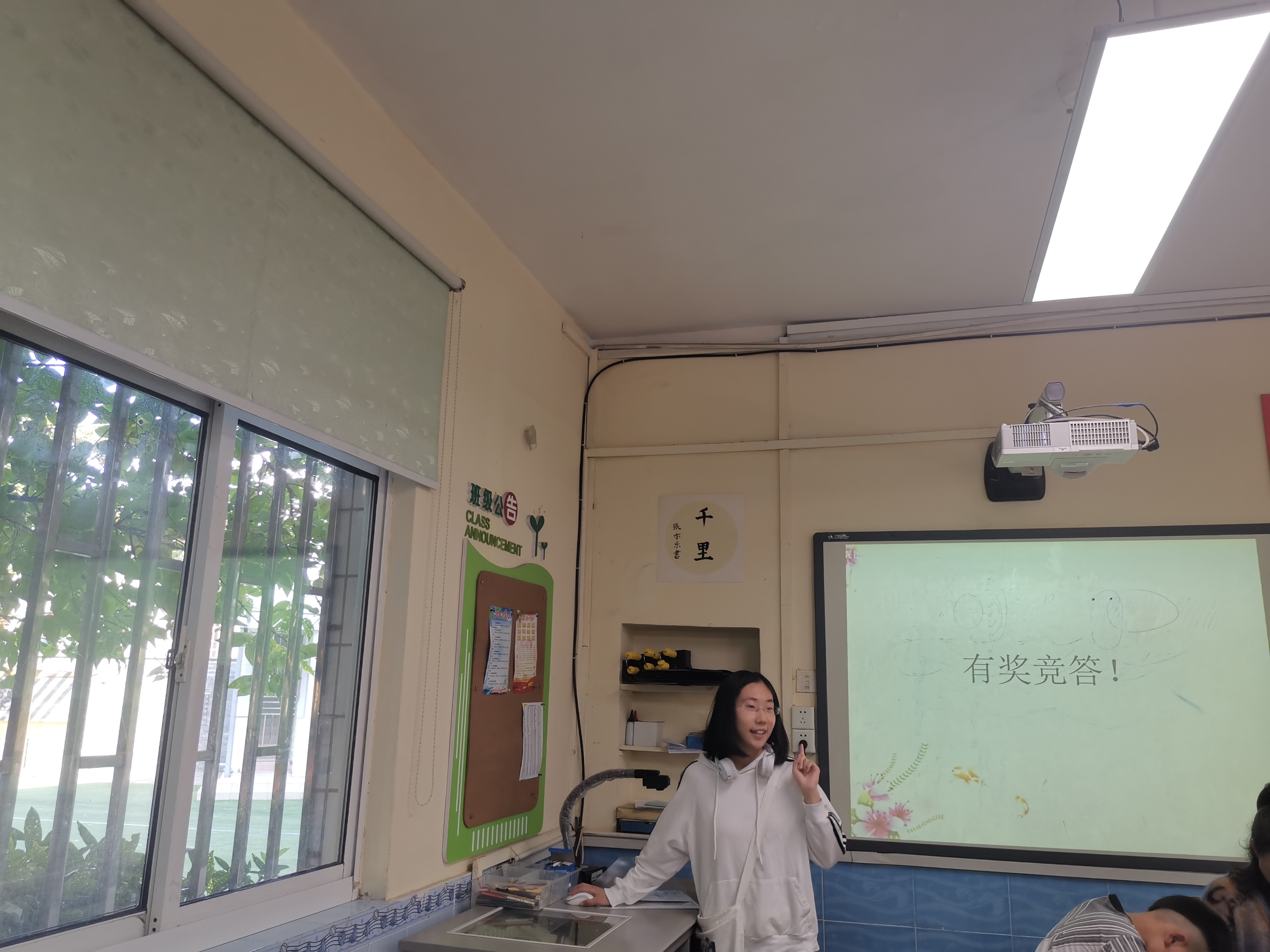 伴随着上课铃声的响起,小朋友们都回到座位上安静下来。老师首先给大家提了一个简单的问题:月亮上面有什么?小朋友们都很积极的在思考并回答老师的问题,有回答玉兔,嫦娥等等,同时还给表现积极的小朋友发了小礼品。简单的问题过后,卞老师开始正式给大家讲解今天的词《花木兰慢·可怜今夕月》,通过对词分句进行现代汉语解释,对作者进行简单介绍,相信大家也会对这首词产生深刻的印象。在讲解诗词的过程当中,小卞老师还和大家进行了纪律的约束,并给表现好的小朋友一个小奖励,这也让同学们在学习诗歌鉴赏的过程中养成良好的习惯。
