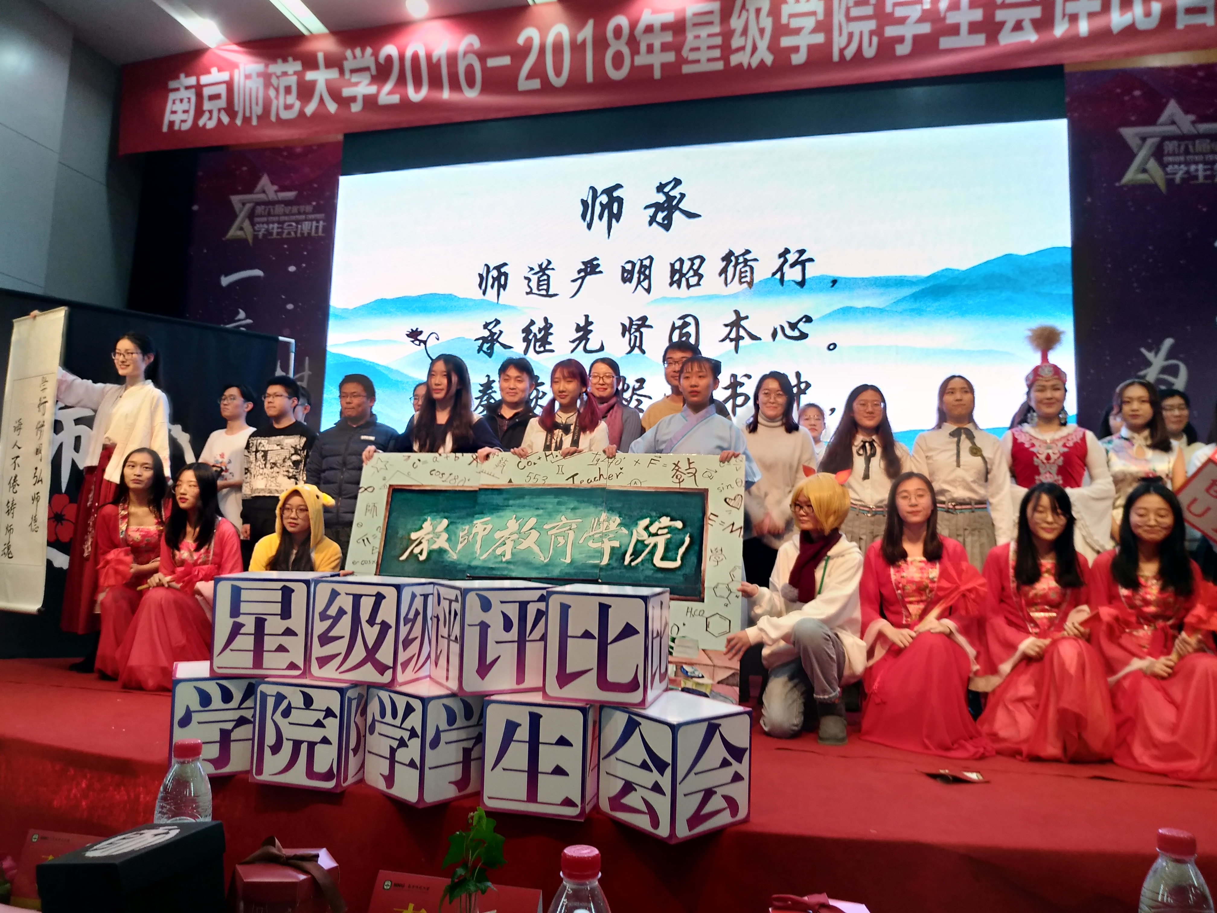 紧接着是服务维权、学生发展和文化建设。开展服务活动,传递师院温暖;完善维权机制,反映合理诉求。同时学生会秉持“学为教育家”的发展理念,为促进学生全面发展而不懈努力:见习者联盟、师范生技能达标测试、“闪耀新师界”系列活动,打造师范生技能竞赛品牌。特色文化建设也彰显学生会的独特魅力。江南女子、新疆女孩的出场让评委和观众感受到异域风情,汉服舞、拉丁舞表演惊艳全场,师院学子的青春活力洋溢在现场的每一个角落。社彩缤纷,争奇斗艳。学生会14个社团蓬勃发展,成绩斐然。教师院辩论队在“仙林杯”中两度夺魁,羽毛球队获校团体第一,乒乓球队获校团体第三。