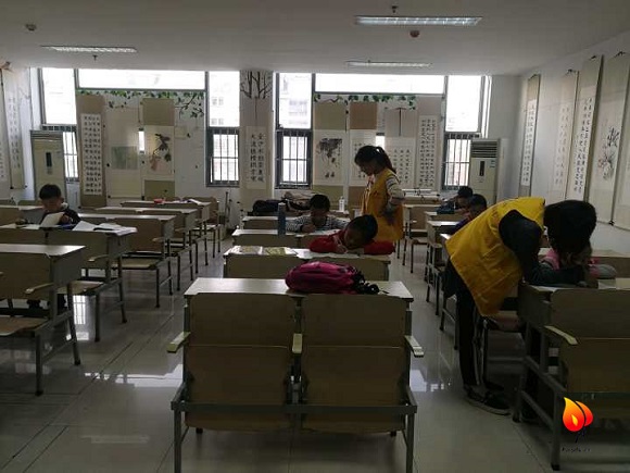在这个过程中,有志愿者老师们对孩子们的帮助,也有他们之间的互帮互助,在六点放学之前,大多数孩子都完成了课后作业。