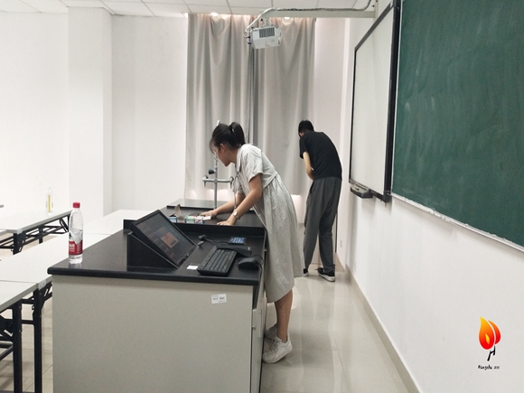 5月30日下午,志愿者们按时赶到了学明楼五楼的微格教室。今天恰逢志愿者管理中心考评组来检查志愿活动,于是大家先进行了签到,然后等待带队人进行卫生任务的分配。