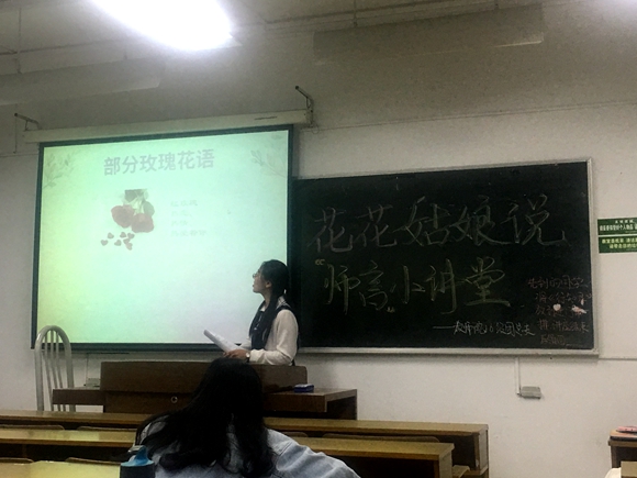 16级地理(师范)的孟聪盈同学于学明楼213教室开展了本学期第三讲“师言”小讲堂——“花花姑娘说”。2016级的师院学子们对于这场讲座充满热情与期待,讲座的40个名额很快就被同学们一抢而空。