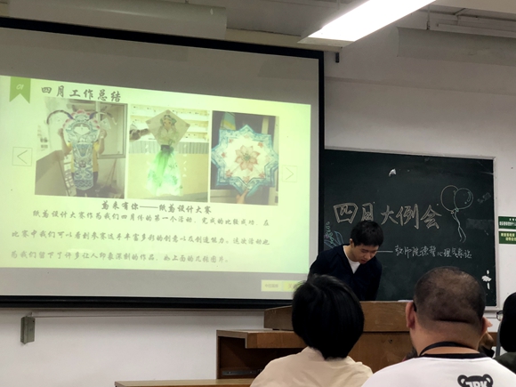 会议伊始,陈文辉同学对四月份的各大活动进行了总结。首先,陈文辉给同学们展示了“鸢来有你”纸鸢设计大赛的获奖作品,并对各个作品进行了简单介绍。接着,陈文辉给大家欣赏了“路过你的城”的活动现场照片,描述了他自己在现场时的感受,并呼吁同学们今后一起加入类似的活动。然后,陈文辉简单介绍了一下五月将要举办的活动,其中包括“心语馨愿”心理情景剧及案例分析大赛、“心情维修站”、“525心博会”。最后,陈文辉重点强调了一下心里气象员的工作调整内容:团辅获奖不再进行综测加分;各年级每学期优秀心员名额上调。同时,陈文辉同学也叮嘱心员,要注重晴雨表、团辅考评、班级日志等相关工作的进行。在随后进行的心站内部会议中,文秘部、活动部、宣传部先后进行了四月份的工作总结,并且对五月即将进行的活动做了更加细致的工作分配,希望所有心站成员能够在接下来比较忙碌的五月工作中,能够完美完成任务。