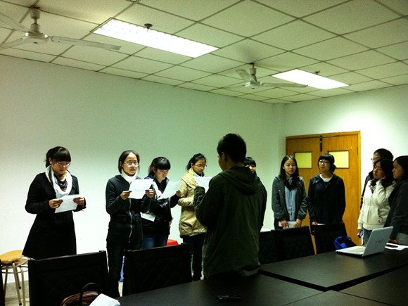 审核工作第三大块即比赛节目展示,演唱、小品、乐器、配音等才艺展示缤纷多彩,参赛人员都对节目做了充分准备。李晓亮老师和田哲同学对各位参赛同学给予了积极鼓励和热心指导,同学们都认真地聆听了意见,并对表演做了相应调整与改善,力求呈现出最完美的舞台表演效果。