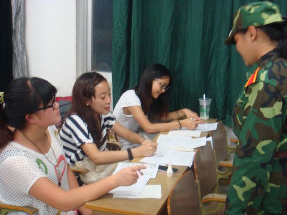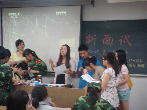 此次的“招兵买马”完全由大二、大三的相关部门负责人完成。参加面试的同学在学海楼的两间大教室中等候。离正式面试的晚上6点还没到,教室里已经人满为患,各面试点门外也排起了长队。刚结束一天的军训的新生们,很多军训服还没来得及换就坐在了略显闷热的教室里,怀着忐忑和激动的心情轻声议论,等待面试的到来。