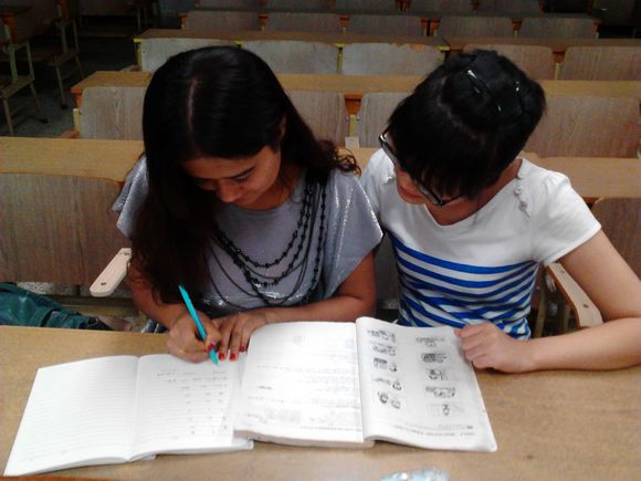 九月初,帮扶小队的两位负责人费健同学与张希翼同学在11级辅导员翟云秋老师的指导下,共同商讨出了一份帮扶活动计划,并召集志愿者与新疆籍同学举行了一次“开学第一课”的交流会。为了使本学期的帮扶工作完成地更好,小队内部召开多次会议,负责人与翟老师进行多次交流,最终确定了本学期的帮扶组织方案,即由两至三名志愿者老师专门负责一位新疆籍同学,一周两至三次辅导,辅导材料依据学生英语水平自行准备,因材施教。