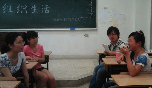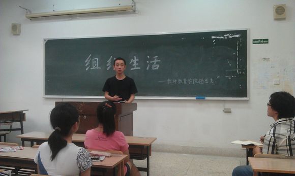 11级分团委学生书记田劲杨作为组织生活的总负责人对活动做了全程的会议记录,本次组织生活由10级分团委宣传部的陆雨婷和郭怡同学主持,周四组的全体同学参加了此次活动。