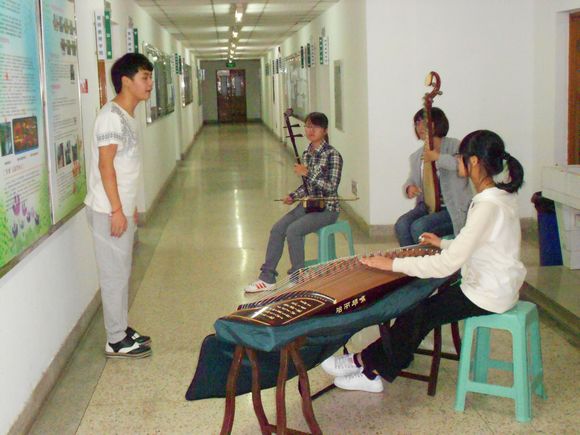 傍晚时分,已有丝丝凉意,虽然临时更换了场地,但是同学们依然热情澎湃,兴致高涨,互相帮助着将各种仪器抬到了化成楼二楼。在教师院学生会轮值主席田哲同学与文体中心主任顾燕君同学的组织和带领下,彩排活动火热开展。