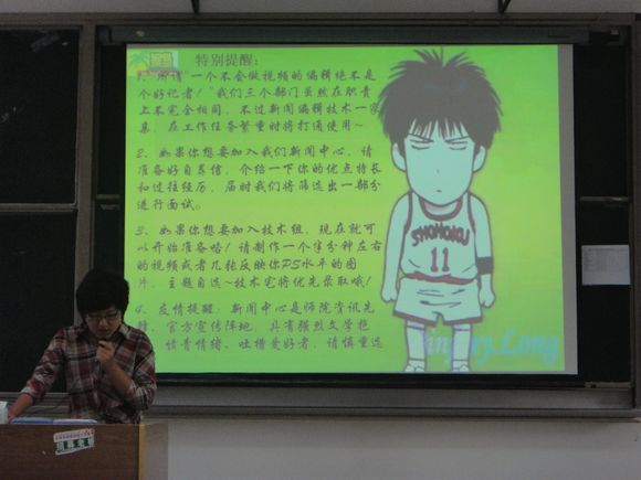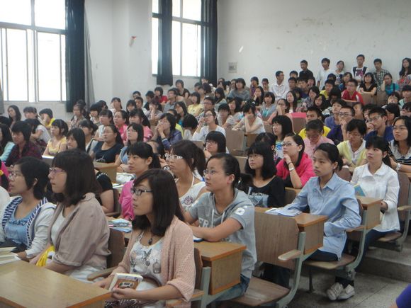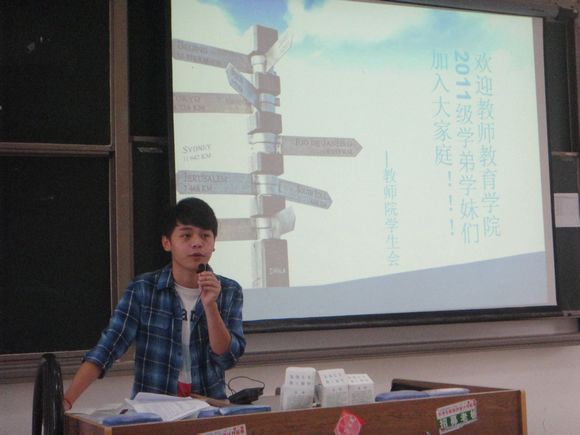 本次宣讲会由教师院学生会、团总支、“红烛”志愿者协会及“德馨”心理气象站这四大学生组织联合召开,学生会轮值主席田哲同学主持。教师院团委书记支景老师出席了此次会议。会议一开始就发生了一个小插曲,由于教室的座位有限,不少新生只能站在过道里。见此情景,前来参加宣讲的学长学姐们纷纷让座,还主动搬来了椅子以便更多的学弟学妹们能够就座。这一个小插曲一下子就拉近了新老生们的心理距离。
