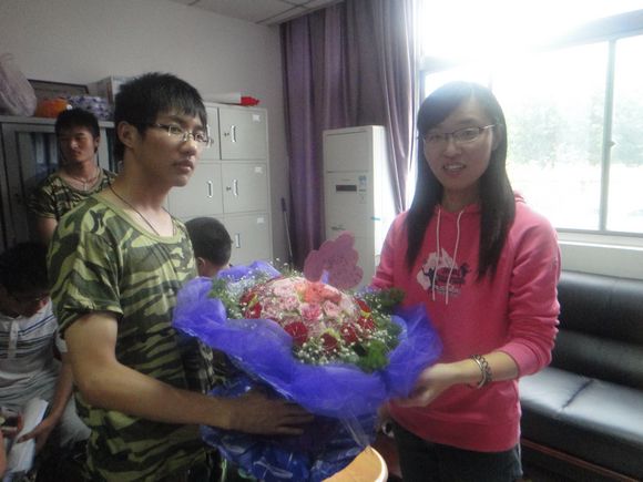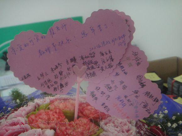 9月10日下午,教师院11级思政班联系人代表全班同学来给辅导员老师献花,年轻的翟老师笑容满面、真情流露,和前来的同学握手拥抱,并略带羞涩地说:“这真是我第一次收到这么一大捧花啊”。其他师范班的同学也纷纷送上贺卡、送来祝福。11级新生“吾爱吾师”爱师周活动就这样自发地进行起来了,各班都以自己的方式对教官、老师的辛劳表示感谢并表明自己将不断努力的决心。
